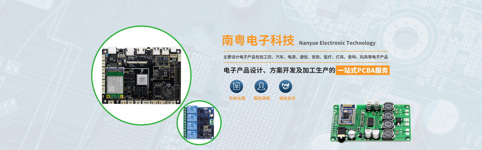東莞市南粵電子科技有限公司是專業從事電子產品設計、電子方案開發、電子產品加工的電子方案公司,主要設計電子產品包括工控、汽車、電源、通信、安防、醫療、燈具、音響、玩具等電子產品開發。